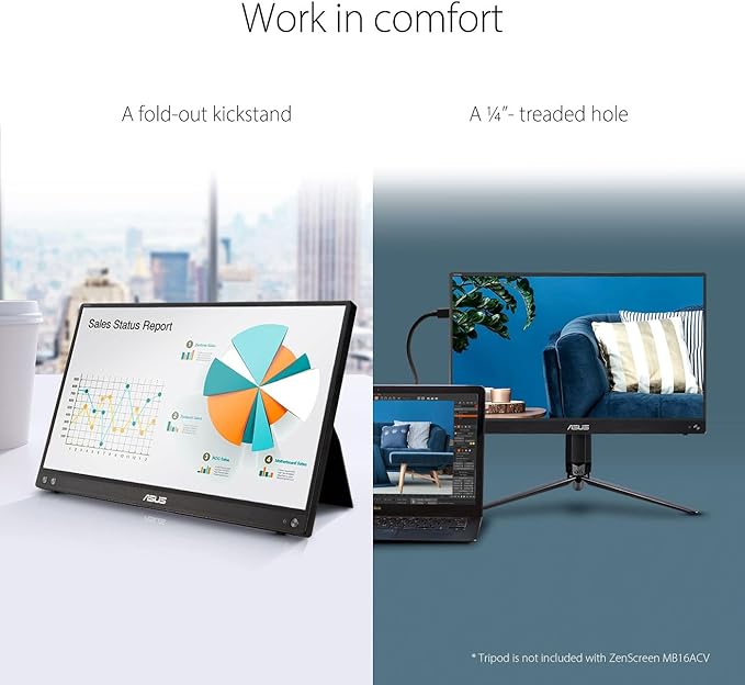 ASUS ZenScreen 15.6” 1080P Portable Monitor (MB16ACV) – Full HD, IPS, Eye Care, Flicker Free, Blue Light Filter, Kickstand, USB-C Power Delivery, for Laptop, PC, Phone, Console