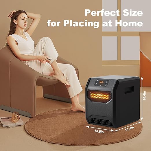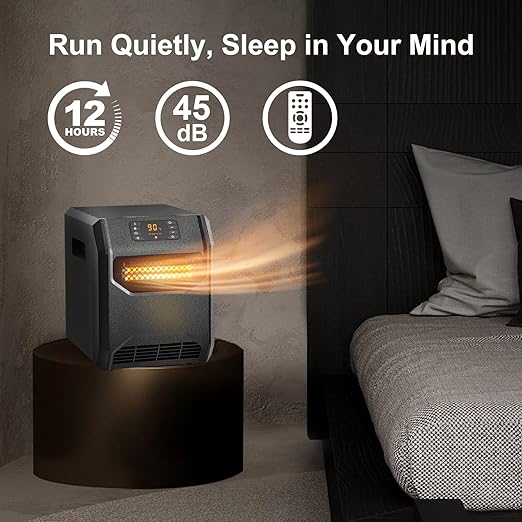 - Electric Heater: Powerful 1500W infrared quartz heat element allows this space heater to heat up in seconds and delivers a steady stream of warm air to you. It is suitable for warming up spaces including bedrooms, basements, garages, living rooms, and can also be used in offices, dorms, hot yoga studios.